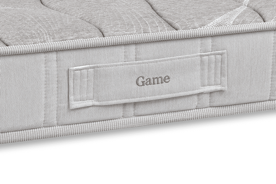 Game incorpora el Sistema Compact con refuerzo lateral, un marco de alta densidad que rodea la carcasa de muelles ensacados, aumentando la estabilidad y prolongando la vida útil del colchón.