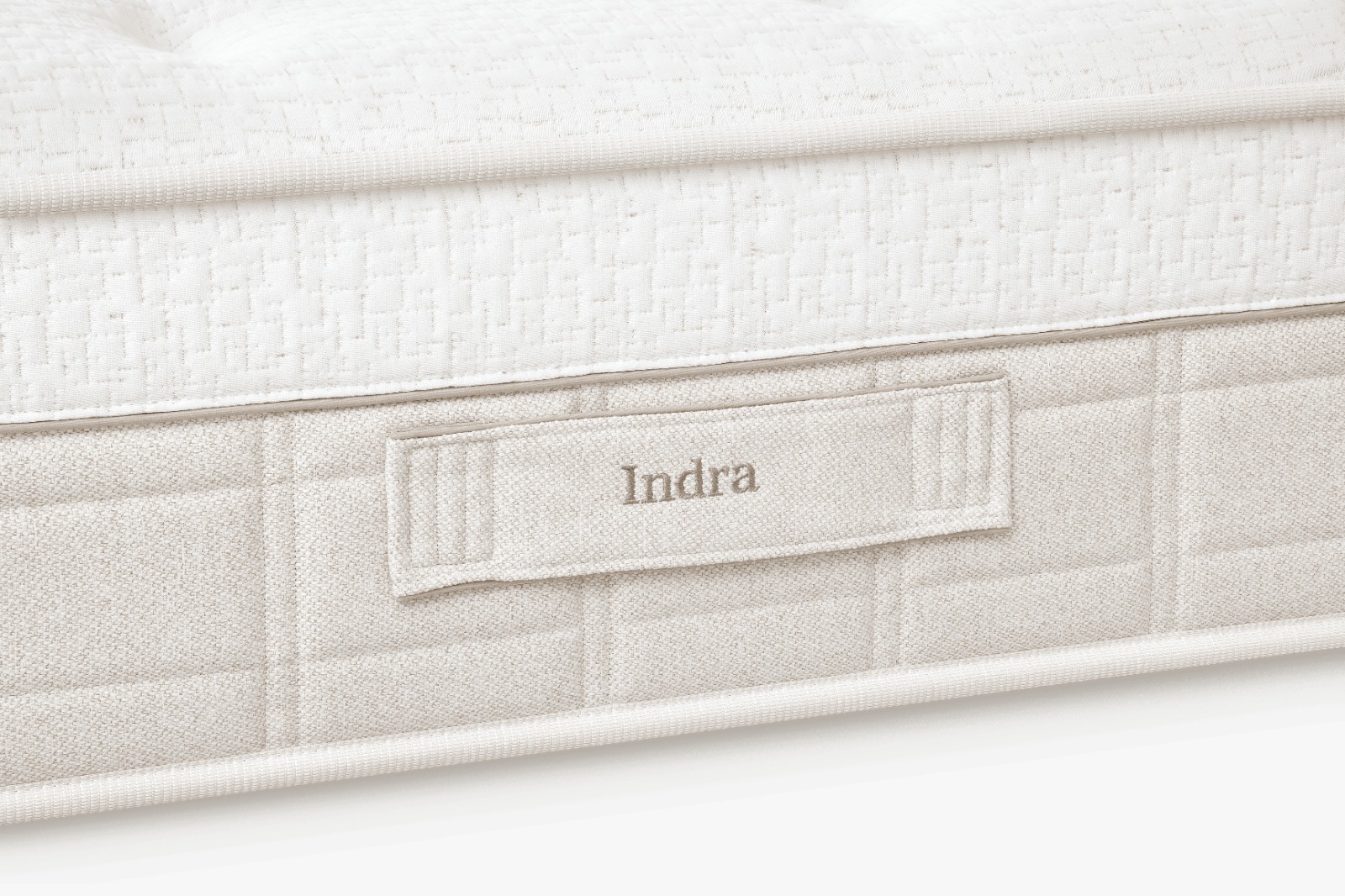 Indra es un colchón firme, compacto y duradero, cuyo sistema de refuerzo lateral protege el núcleo y ayuda a conservar intactas sus cualidades durante más tiempo.