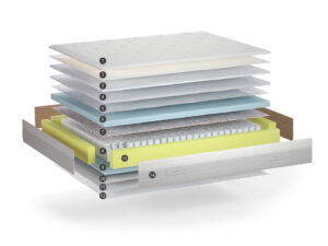 AceroMaterial esencial que aporta solidez estructural al núcleo del colchón, garantizando firmeza y estabilidad.