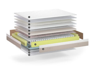 Espuma HR de 30 kg/m³ que destaca por su resistencia, flexibilidad y adaptabilidad. Mejora el soporte y contribuye a un descanso más estable y confortable.